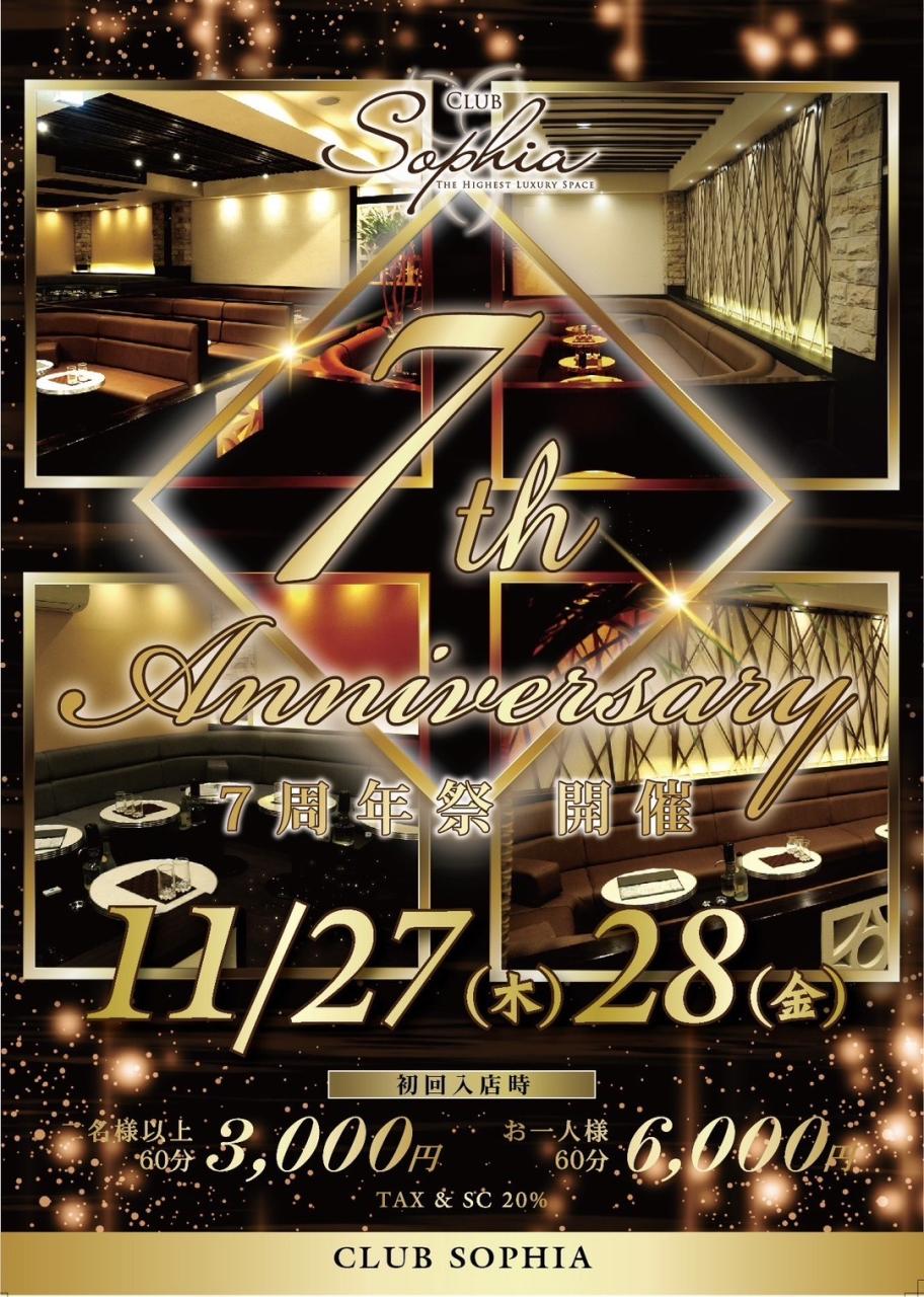 本日11月27日(木)、那覇市松山キャバクラ《ソフィア》は7周年を迎えます。